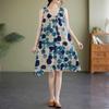 Übergröße Damen Sommer Locker Träger A-Linien-Rock Ärmellos Rundhals Printkleid
