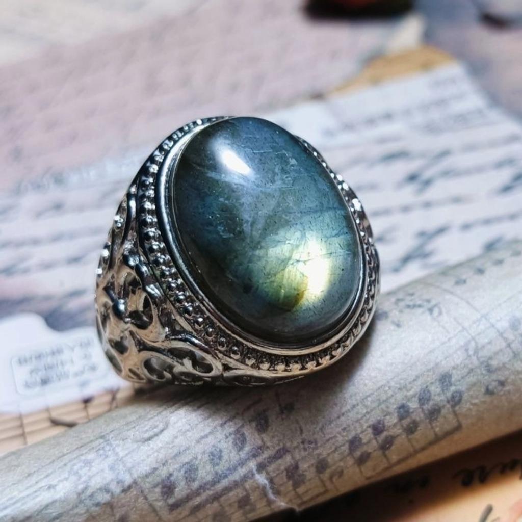 Moonstone Ring Men's Inlaid Stainless Stone Pattern Finger Ring Handmade Retro Couple Style Valentine's Day Gift