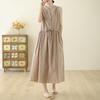 Sommer neues Baumwoll- und Leinen literarisches lockeres gestreiftes V-Ausschnitt ärmelloses Westenkleid Damen