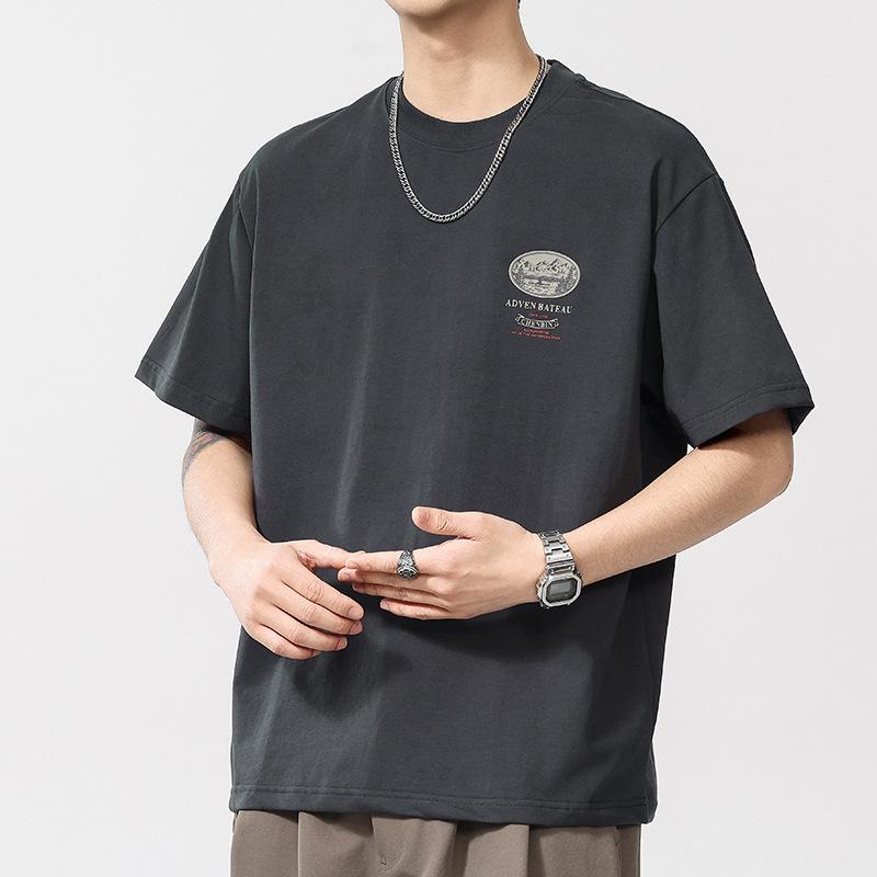 Printed Pattern Retro Men's Loose Round Neck T-shirt Short Sleeves