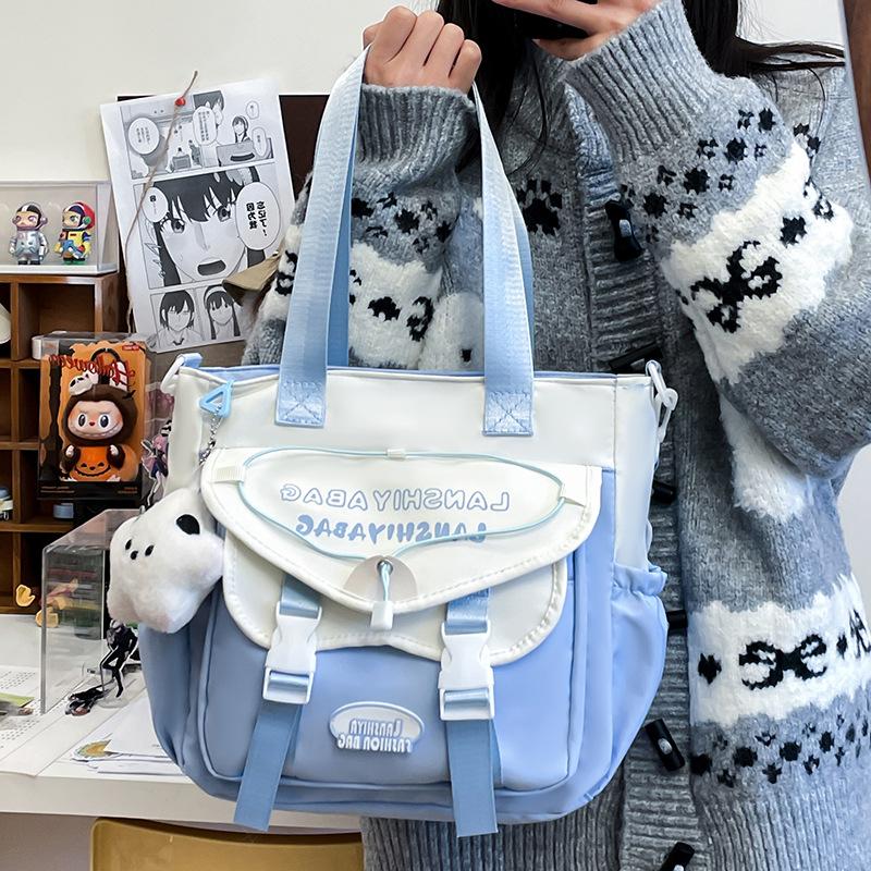 Student Einfache Nachhilfetasche Japanisch Frisch Klappdeckel für Studium und Studienpendeln Umhängetasche Kontrastfarbe Crossbody-Tasche für den Unterricht