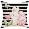 Osterkissenbezug Schwarz-Weiß Gestreiftes Kaninchen Osterei Bedruckter Leinenkissenbezug Sofakissen