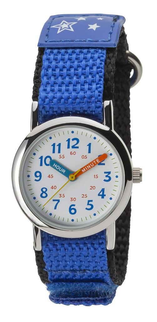 [Clefer] Analogue Watch for Kids, Educational Watch, Waterproof, Nylon Strap, White Dial, Kids, NB-AK216-A, Girls, Blue
