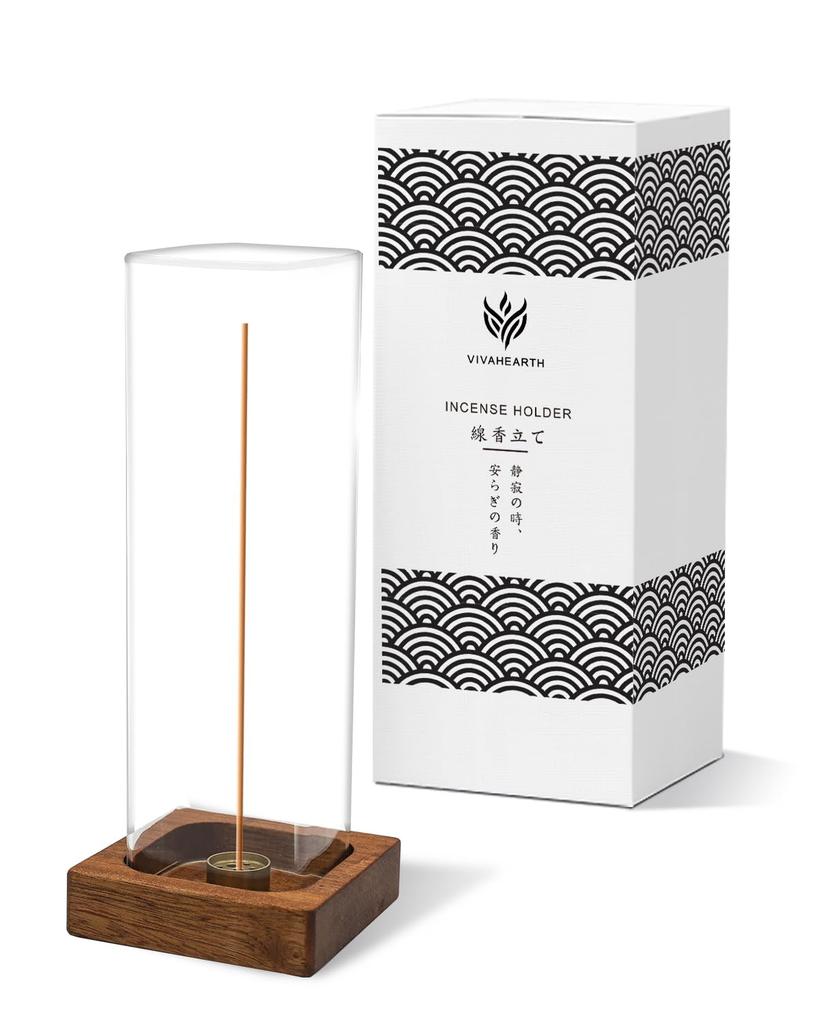 VIVAHEARTH Incense Holder Ashes spill Stylish incense holder natural wood base Simple interior Incense burner Entrance Meditation room Study - don't -