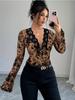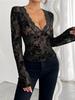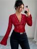 Frühlings- und Sommer Damen V-Ausschnitt Spitze Spleißen Mesh Glockenärmel T-Shirt Tops Damen Vielseitige Schrank-Essentials Modeartikel Hemd