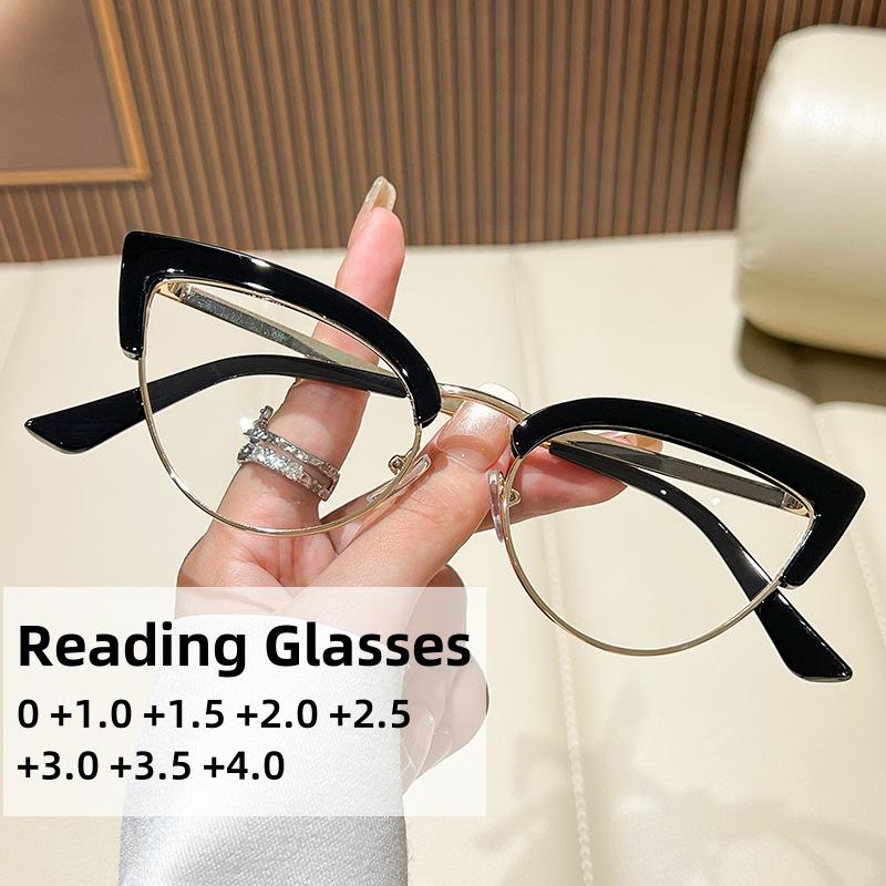 Retro Cat Eye Alterssichtigkeitsbrille Mode Metall Halbrand Blaulichtfilter HD Lesebrille Damenbrillen Herrenbrillen