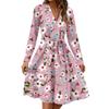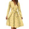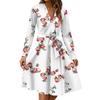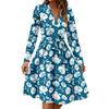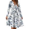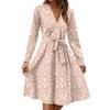 Damenmode Lässig V-Ausschnitt Langarm Taille Blumenmuster Midi-Kleid