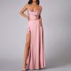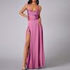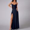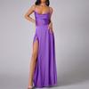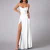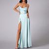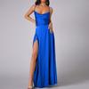 Damen Sommer Rückenfreies Langes Satin Kleid Wasserfallausschnitt Überkreuzte Spaghettiträger Party Langes Kleid