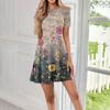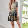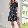 Damen Casual Mode Rundhals Kurzarm Blumendruck Kurzes Kleid mit Taschen