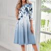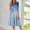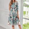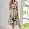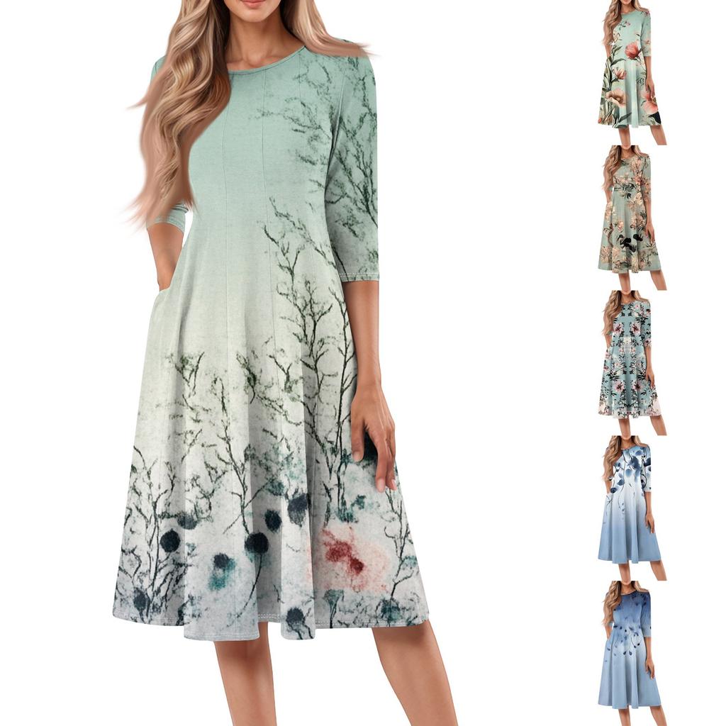 Lässiges, modisches Midikleid mit Rundhalsausschnitt, Dreiviertelärmeln und Print für Damen