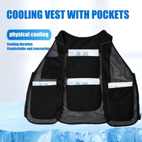 Bleiben Sie kühl und komfortabel mit unserer hochwertigen Kühlweste. Diese Weste aus strapazierfähigen und atmungsaktiven Mesh-Stoffen verbessert die Luftzirkulation für maximalen Komfort. Mit vier Vorder- und Rückentaschen für Kühlakkus bietet es Rundum-Kühlung aus mehreren Winkeln..