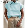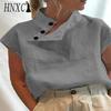 HNXC Modische, lässige, einfarbige, kurzärmlige Blusen und Hemden für Damen