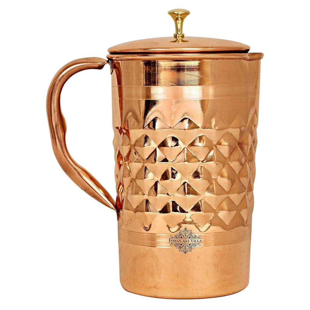 Special Feature Comes in different designs & sizes, Great gifting option, Pure copper jug with lid that has brass noob,
