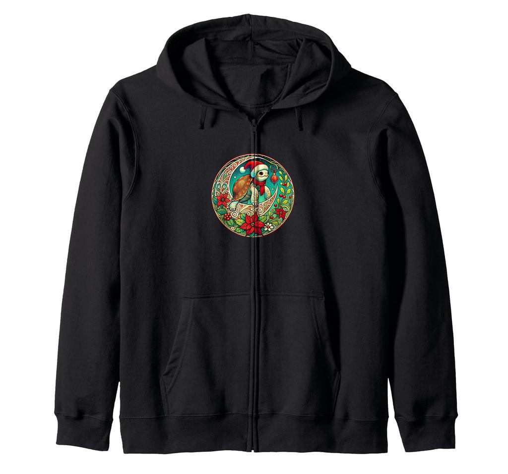Weihnachts-Dosenschildkröte Weihnachtsmannmütze Illustration Jugendstil Zip-Hoodie