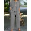 Damen 3-teiliges Set, bedruckte Strickjacke und einfarbige Träger-Freizeithose, Alltagsset