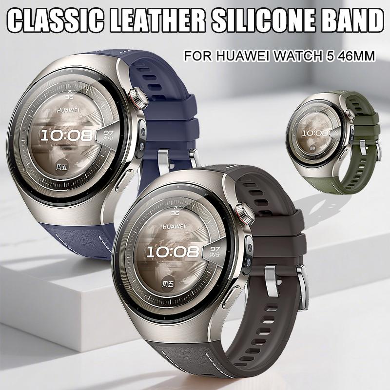 Silikonarmband für Huawei Watch 5 46mm Ohne Lücken Lederband für Huawei Watch 5 46mm Business Schnellverschlussband