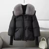 Kurze Daunen-Baumwolljacke für Damen im Winter, stilvolle Baumwolljacke für kleine Mütter, Baumwolljacke mit großem Fellkragen für Oberbekleidung