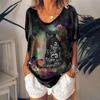 Damen T-Shirt mit Print, Künstlerisches Kurzarm-V-Ausschnitt Sommeroberteil, Stilvoll und Trendig