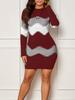 Damen mittellanger bis langer kurzer Rock, Rundhals langärmeliges bedrucktes gestricktes figurbetontes Kleid
