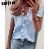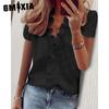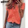 GMXIA Damenmode, lässig, einfarbig, kurzärmelig, V-Ausschnitt, Blusen und Hemden