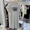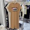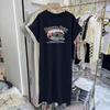 Bedrucktes koreanisch-gestyltes Kurzarm-T-Shirt-Kleid für Damen, locker und lässig, Übergröße, kleines Flatterärmel-Schlitzkleid, langes Kleid für den Sommer