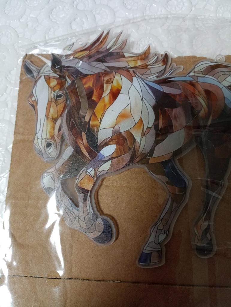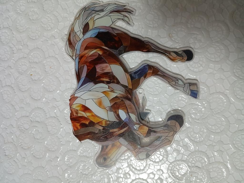 Das Pferd ist aus Kunststoff geschnitten und einseitig bemalt.