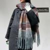Autumn and winter new versatile imitation cashmere high-end women's warm and thickened scarf simple scarf woven fringed shawl