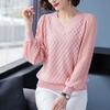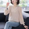 Damenpullover Loose Fit V-Ausschnitt Hohltop Sommertemperament Ice Silk Strick-Basishemd