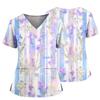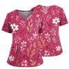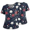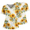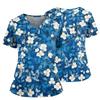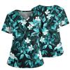 Damen Casual Bedrucktes V-Ausschnitt Taschen Seitennaht Schlitz Kurzarm Top