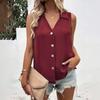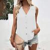 Modisches Damen V-Ausschnitt Lockeres Chiffonhemd Ärmellos Knopfhemd