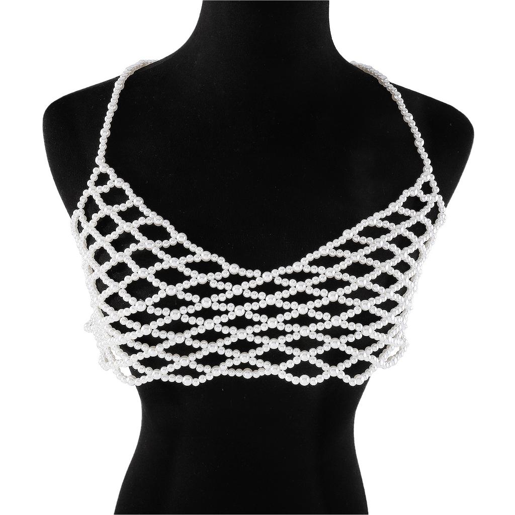 Fashion Hollow Pearl Suspender Chest Ornaments Simple Sexy Hand-woven Vest Body Chain