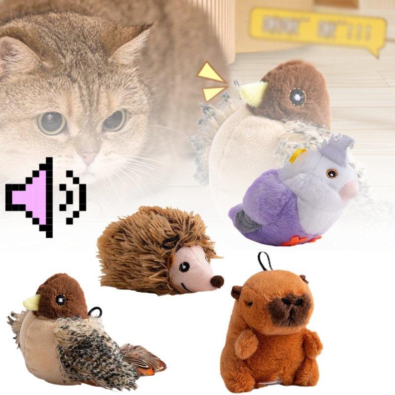 Sprechendes Plüschkatzenspielzeug. Dieses Spielzeug ist aus superweichem, hochwertigem Plüschmaterial gefertigt.. Es stehen verschiedene Designs zur Auswahl, darunter Spatzen, Papageien, Igel und Wasserschweine.