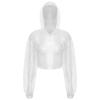 Damen Glitzerndes Transparentes Oberteil Kapuze Langarm Cropped Design Locker Geschnittene Tops Club Rave Party