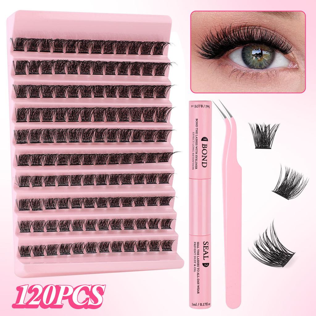 120 Büschel Dicke Natürliche Falsche Wimpern Set 8-16mm DIY Segmentierte Einzelbüschel Gebogene Wimpern
