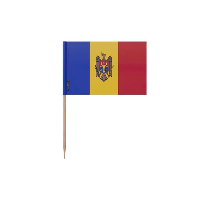 Cure-dents Drapeau de la Moldavie - 10 cm - 100 pièces - Plastique adhésif - Bâton en bambou - Pixelforma