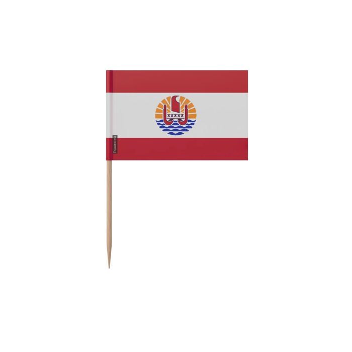 Cure-dents Drapeau de la Polynésie française - 10 cm - 100 pièces - Plastique adhésif - Bâton en bambou - Pixelforma