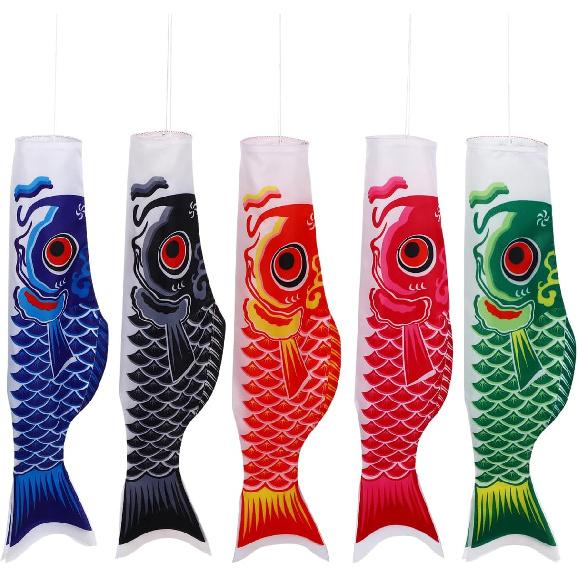 DOITOOL 5 Pcs Japanese Carp Windsock Streamer Fish Flag Kite Koinobori Hanging Decor for Japanese Sushi Bar Izakaya Room (70x17cm)