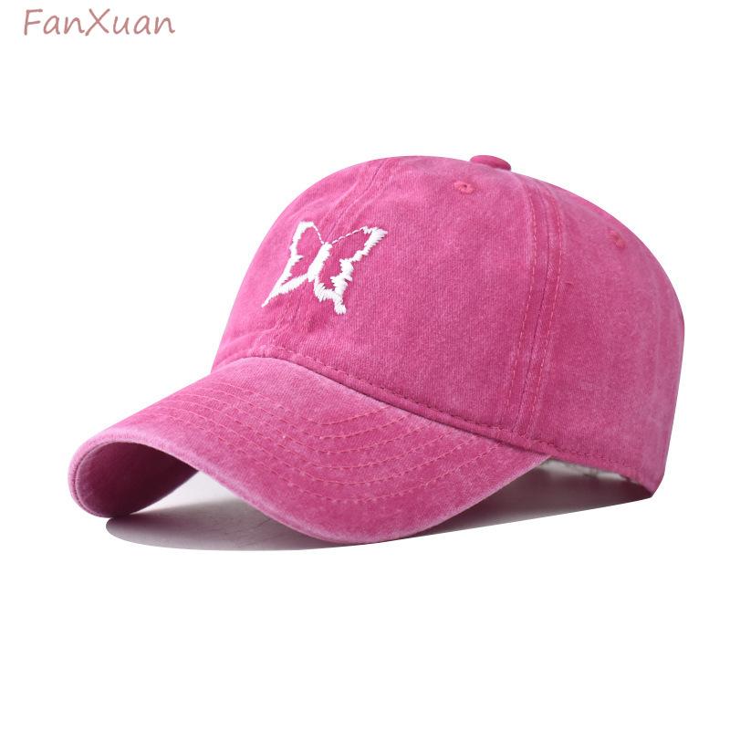 Niedliche Baseballkappe mit Schmetterlingsstickerei für Frauen Mädchen Rosa Sommerkappe Gewaschene Baumwolle