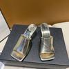 2024 Summer Silver Open Toe Women Slippers Fashion Elegant Slides Shoes Ladies New Arrival Outdoor Dress Wedges Heel Sandalias