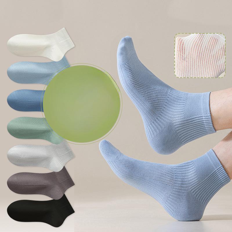 Men's Summer Thin Pure Cotton Mid-calf Socks, Mesh Breathable, Sweat-absorbing, Odor-proof Short Socks, Sports Cotton Socks