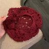Damen Retro Japanischer Stil Häkel Hohl Baskenmütze Frühling und Sommer Dünn Nische Handgefertigt Gestrickt Modischer Künstlerhut