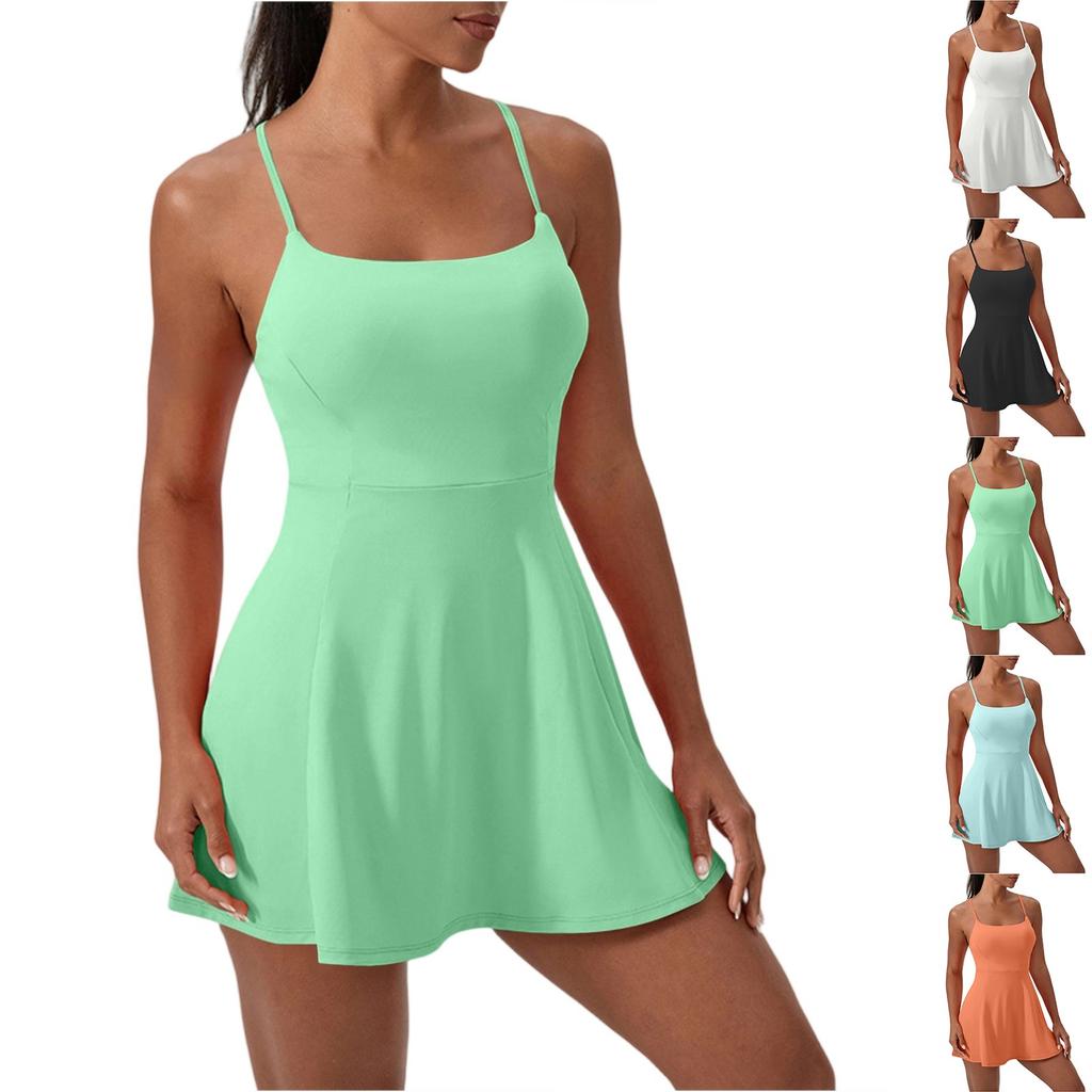 Damen Sportkleid Ärmellos Eingebauter BH und Shorts Trainings Tenniskleid