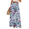 Damen Sommer Boho Palazzo Hose Hohe Taille Weites Bein Blumendruck Freizeithose Mit Taschen