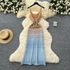 Sommer Damen Spaghetti Träger Gestreifter Strickpullover Langes Maxi Urlaubs Kleid