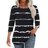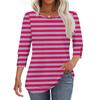 Damenmode Lässiges T-Shirt Top mit Streifenmuster, Rundhalsausschnitt und Sieben-Ärmeln