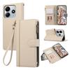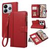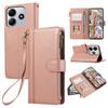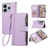 Für Xiaomi Redmi Note 14 4G (163,25 mm) Hülle mit mehreren Kartenfächern Reißverschluss Leder Handyhülle mit Handschlaufe - Lila