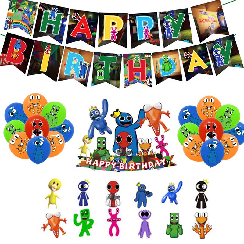 Regenbogen Roblox Freunde Party Zubehör Banner Kuchen Topper Ballons Kinder Geburtstag