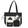 Kontrastfarbene Umhängetasche mit großer Kapazität, Mädchen-Schulter-Tragetasche, Studentische Unterrichtstasche mit Münzfach