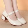 4cm Britischer Stil Flachmund Atmungsaktiv Glänzende Lederschuhe Mary Janes 2025 Frühling Mittelhohe Blockabsätze Schuhe für Büro Mutter Arbeit