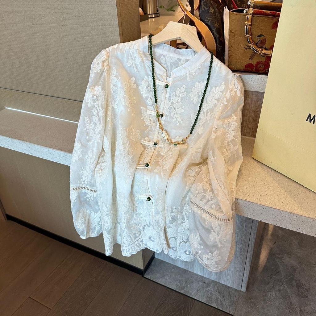 White embroidered shirt women's 2025 early spring new retro button-up annual shirt long-sleeved top